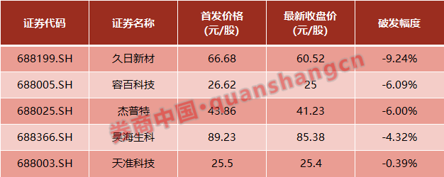 从时间上看,上述科创板公司的破发均在近两周内集中发生。其中,久日新材上市后股价持续走低,上市次日(11月6日)即宣告破发,最新股价已跌破发行价近10%。