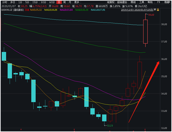 而这也是温氏股份连续七天出现的大涨行情。数据显示,从12月27日至今,温氏股份股价从32.4元一路上涨至38.25元,短短七个交易日,区间涨幅高达18%以上。