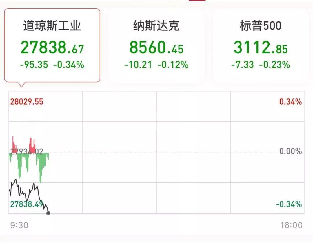 美股市场,盘前期指全线杀跌,开盘亦全线低开,截至券商中国发稿,道指下跌0.34%,标普下跌0.23%,纳指下跌0.12%。