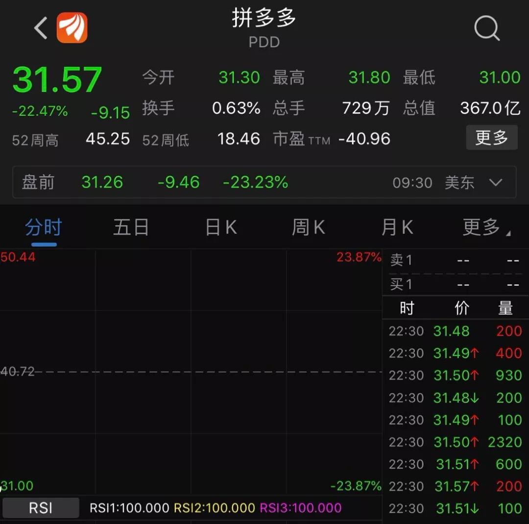 热门中概股普遍下跌,拼多多跌幅扩大至近25%,趣店跌超5%,陌陌、迅雷均跌超2%,瑞幸咖啡、阿里巴巴、虎牙、58同城、趣头条、京东、百度、腾讯音乐跌超1%;蔚来汽车上涨超1%,晶科能源和优信涨超2%,天华阳光涨超5%。