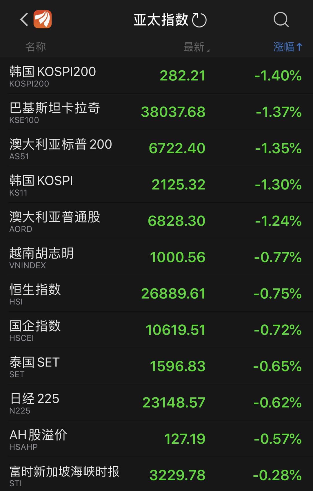 欧洲主要股指也集体陷入跌势,截至发稿时间,英国和爱尔兰市场跌幅皆超过1%。