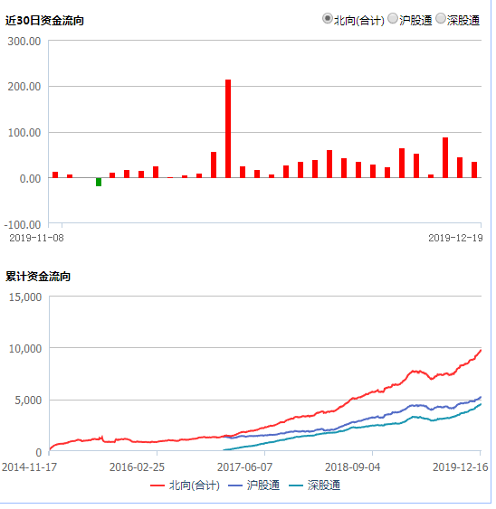 截至12月19日收盘,北向资金合计净流入35.35亿元,其中,沪股通净流入20.82亿元,深股通净流入14.53亿元。